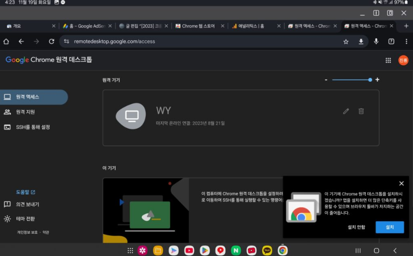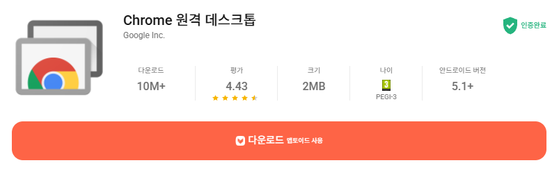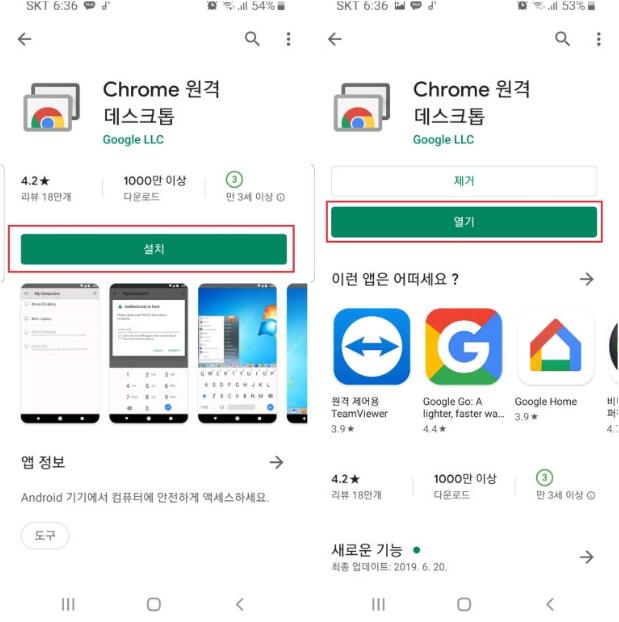다만 모바일 기기에서는 “Chrome 원격 데스크톱” 앱을 별도로 설치해 주어야 합니다.