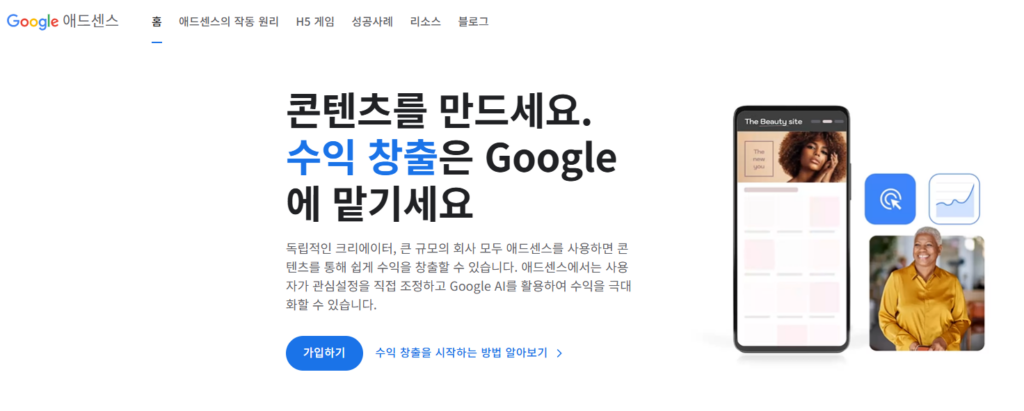 광고주를 직접 찾을 필요가 없고, 구글이 다양한 광고를 자동으로 연결해 주기 때문에 초보자도 쉽게 시작할 수 있다는 점이 큰 장점인데요.